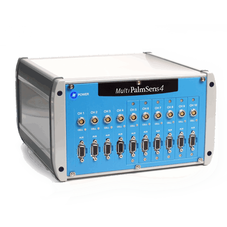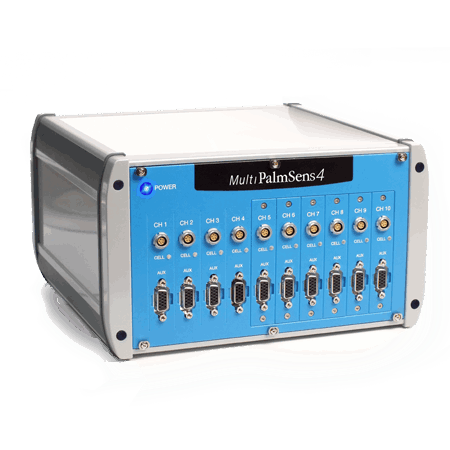 Potentiostat/Galvanostat/EIS analyzer Small USB powered Potentiostat Potentiostat with Bluetooth 4 to 10 channel Potentiostat 4, 8 or 12 channel Potentiostat Potentiostat with 4 working electrodes Potentiostat with integrated multiplexer